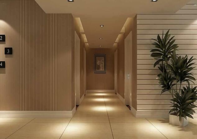 光照是走廊的最重要的設計要點,尤其是走廊自然采光較差的情況下,充足的光照可以改善昏暗的走廊。但是并不是燈光越多越好,大家可以根據室內面積的大小來選擇照明燈具的數量,一般燈光上以黃色光為主,利于營造室內溫暖的氛圍。