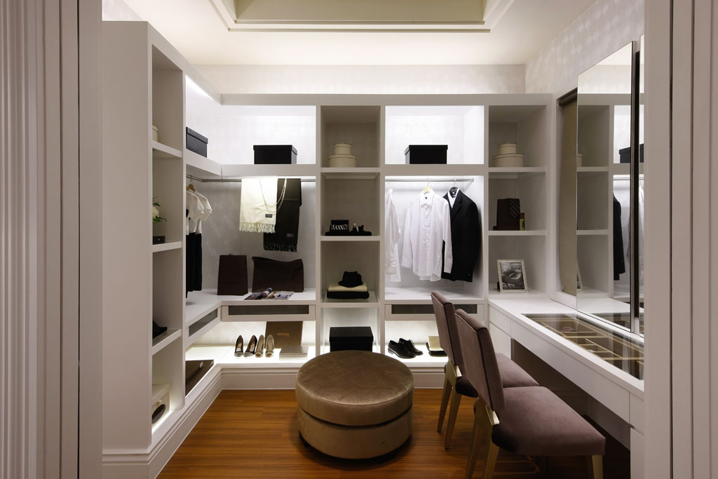 衣帽間外表看是簡樸,但內部構造頗有玄機,裝的衣服比普通衣柜要多25%,柜身可分為多種分柜,可根據空間大小挑選若干分柜自由組合,流動層板、抽屜數目可適當增減。有些入墻衣柜中還配有彈性拉伸設備,任意進級、簡潔實用。